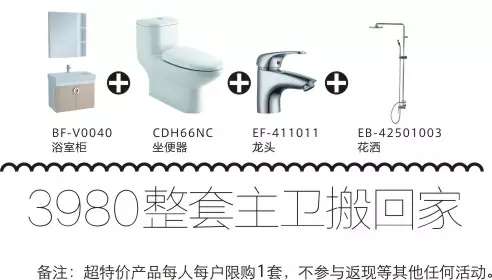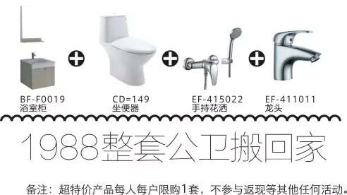 活动期间只需预存1000元,即可提早预订鹰卫浴限量供应1988元爆款套餐,工厂打包供应,先定先得。(备注:预存1000元抵货款使用)