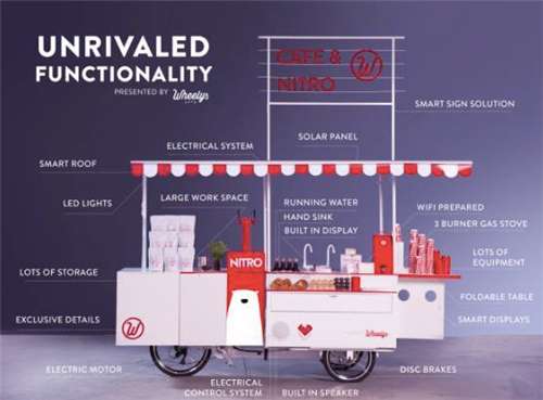 Wheelys的咖啡车或许看起来只是一辆改装后的人力三轮车,最低价只有2999美元,但其实它的科技含量相当有得聊。
