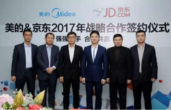 继1月5日美的集团和腾讯QQ在深圳签署战略合作协议,共同构建基于IP授权与物联云技术的深度合作后,1月16日下午,美的集团与京东集团在美的总部进行了闭门会议,美的集团董事长兼总裁方洪波、京东集团CEO刘强东等人参会,双方正式签署美的集团与京东集团2017年战略合作协议,本次合作协议确定2017年度经营目标200亿元人民币。