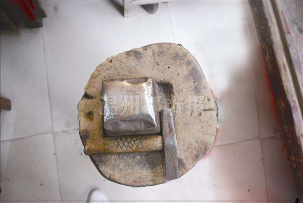 一把灯草浸在油盏里,用一个弯头吹管把银子烧软,然后用一个小锤子在一个铜模子或一个小铁砧上叮叮笃笃敲打一气,敲出各种银首饰——这样的场景在叶老的店里已经看不到了,他已改用高温喷枪,插上电,用打火机一引,火柱就会喷出来。火光熊熊,映着叶老的脸,他说:“高温喷枪会在短时间内将银块熔解,再锤打成银片备用。”紧接着拿到小铁砧上轻轻锤一锤、锉一锉,去除毛边毛刺。