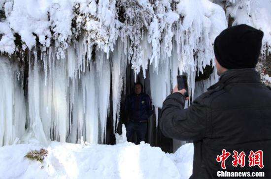 意大利南部城市被大雪覆盖,意大利民众在南部城市的大雪中出行,民众在雪中拍照。