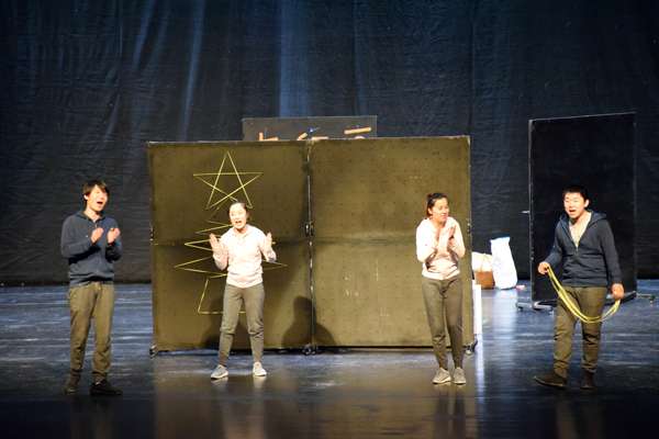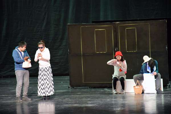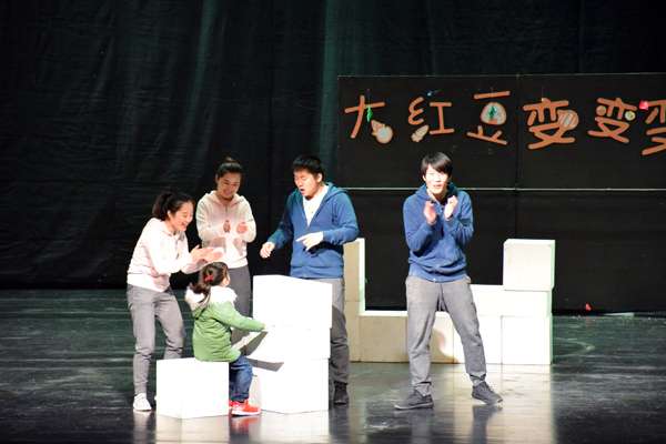 《大红豆变变变》讲述了一个带着红帽子的女生大红豆独自搭乘地铁去寻找上班的妈妈的故事。在地铁上,红豆遇到了倒霉的骗子、傻乎乎的强盗、身怀六甲的准妈妈、带着水蜜桃的农夫......最后红豆顺利来到妈妈工作的地方,妈妈也因为红豆的意外到来毅然放弃了工作。孩子们跟着红豆遭遇形形色色的陌生人,家长们则在红豆妈妈的一句“工作可以再找,我的红豆只有一个”中反思陪伴孩子成长的重要性。在一个多小时的演出中,演员们的投入表演夸张幽默,充满喜剧色彩;在创意巧思中不断变换造型的衣物夹、浴巾、手套、白色积木等道具,更是让孩子们打开想象的翅膀,让全场观众笑声不断。