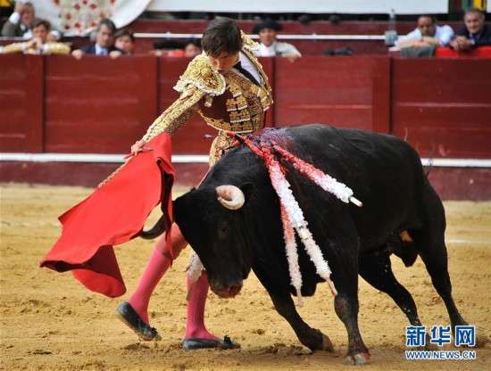 1月22日,在哥伦比亚波哥大,西班牙斗牛士洛佩斯进行斗牛表演。哥伦比亚斗牛节在波哥大圣玛丽亚斗牛场举行。 新华社/西霸