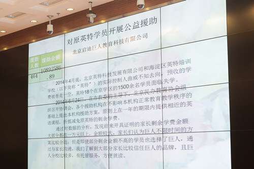 2014年4月底,北京英特科技发展有限公司和海淀区英特培训学校(以下简称英特)的实际控股人曲威不知去向,预收的学费被卷走一空,英特18个在京学区的1500名学员面临失学。巨人学校热烈响应协会号召,对原英特学员展开公益援助活动,共援助学员人数464名,援助金额10892586.89元。通过数据的分析,发现前来开具证明的家长剩余学费金额大部分在一万元以上,金额较大,家长们认为启迪巨人不限时间的方案比较合适,另有部分剩余金额不高的学员也选择了巨人。通过与家长的沟通,我们了解到大部分家长比较信任巨人学校的品牌,且巨人分校比较多有托管服务,方便就读。