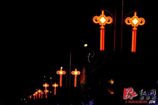 红网新邵县分站2月8日讯(分站记者 杨卫军 通讯员 毕文忠)金鸡报晓万物新,欢乐祥和幸福城。2017年新春夜晚,走在湖南省新邵县的大街小巷,各种造型的霓虹灯、高高悬挂的红灯笼和象征吉祥的中国结,伴着扑面而来的浓浓年味,将整座城市装扮得缤纷多彩。