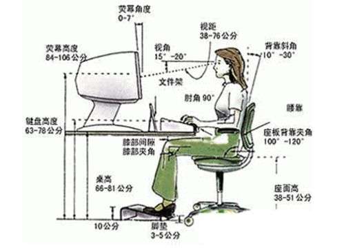 首先,使用电脑时的正确坐姿应该是上半身挺直,不要驼背或是弯腰弓背,胸部离