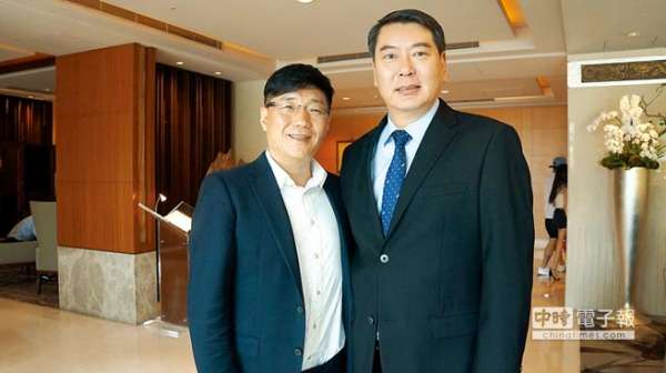 看好台湾餐饮市场,北京黄记煌餐饮集团董事长黄耕(左)决定与天葱国际成立合资公司,将「黄记煌三汁焖锅」引进台湾,右为天葱国际策略长张国强。图/姚舜