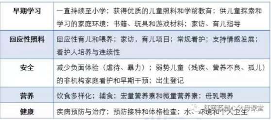 国家卫生计生委干部培训中心主任蔡建华在第三届中国婴幼儿发展论坛上详细介绍了“养育照护”所包括的五大方面:
