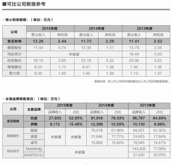 国内女装可比参考数据
