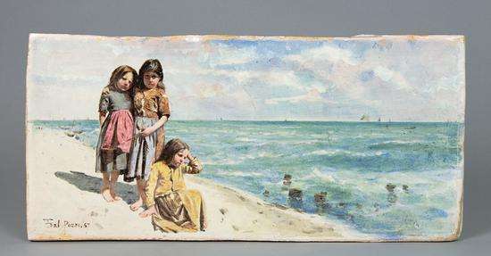 流浪的小女孩 托马索?达尔波佐(1862~1906) 法恩扎 1887年 锡釉陶陶板 高19.5厘米、长40厘米、厚1.9厘米