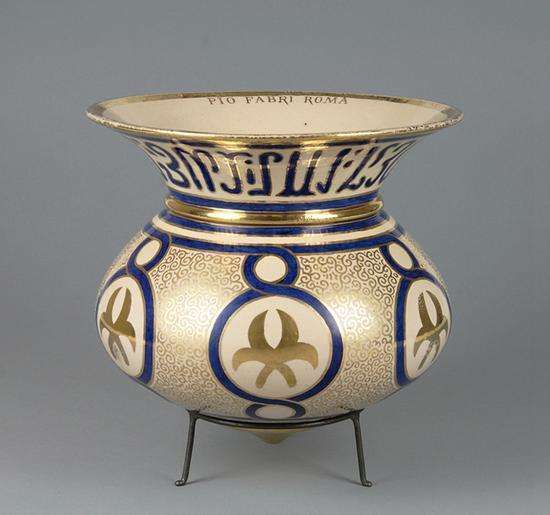 罐 皮奥?法布里(1847~1927) 罗马 19世纪末~20世纪初 锡釉陶 高28.5厘米、直径31.2厘米