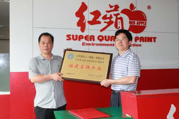 2012年5月4日上午10时,福州市罗源县质监局吴祖祥局长等相关领导莅临红苹果化工(福建)有限公司总部考察指导,并为红苹果涂料荣获福建名牌产品举行授牌仪式,吴祖祥局长亲自颁发“福建名牌产品”证书。