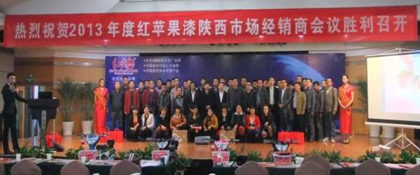 近日,“新科技交流新产品推广会”暨2013年红苹果油漆陕西经销商峰会圆满落幕,来自红苹果油漆公司总部客服一部游经理、红苹果油漆陕西办事处薛总及业务团队、陕西地区经销商代表、意向客户、媒体嘉宾等近百人参加了此次会议。