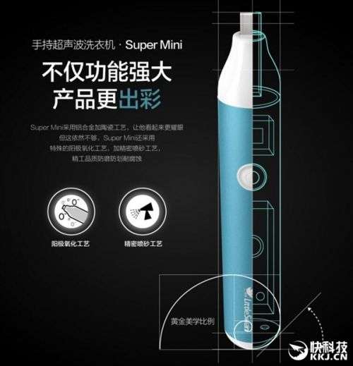 该洗衣机非常小巧,三围34x31x200mm,重185g,拥有三色可选,采用900mAh可充电设计。