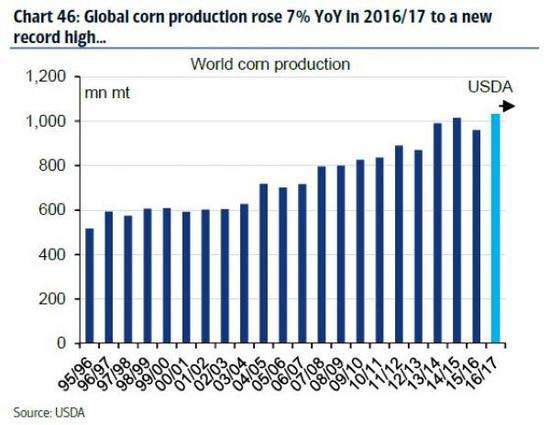 玉米就是产量快速增长的典型。这种农产品产量在2016/17种植年同比增加了7%,有望突破历史峰值记录。