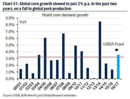 不过美银美林已经看到一些饲养需求放缓的迹象,主要是因为玉米价格上涨导致了其他饲料寻求替代。全球饲养需求水准将在决定玉米需求总量中成为关键。