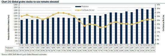 至于谷物产业如何才能重回平衡?美银美林认为,别指望种植户会单方面减少供应,唯一的希望似乎只能寄望于外部冲击(比如与天气相关的事件)。