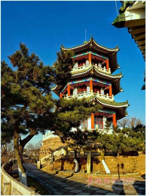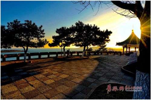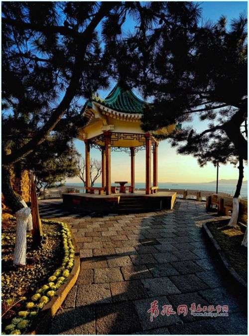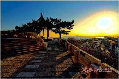 近日,青岛天气晴好,黄昏时分小鱼山一带景色迷人。夕阳如火,染红半边天,晚霞中的览潮阁古朴典雅,颇具美感。站在小鱼山上极目远眺,前海黄昏美景尽收眼底,一览无遗。在这里,你会感受到青岛冬日的恬淡悠闲之美。