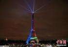 埃菲尔铁塔点亮奥运色灯光 争奥…