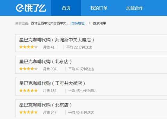 在饿了么的商户中心中,已经入驻的品牌之中星巴克赫然在列。但新浪科技以北京西城区为地点搜索星巴克,都显示“星巴克咖啡代购”的字样。