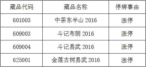 \u00A0 \u00A0 \u00A0 \u00A0本中心下列藏品于2017年1月19日、2017年1月20日、2017年1月21日已连续三个交易日价格涨停: