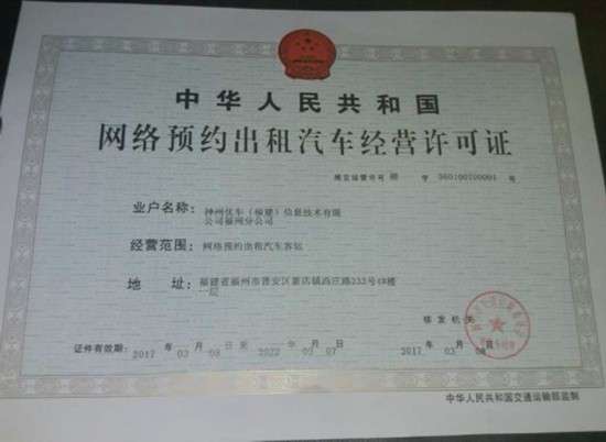 今年1月26日,神州專車成為全國首家線上服務能力獲得正式認定的網約車平台,並獲得了全國首張網約車牌照,成為全國第一家獲准開展網約車經營服務的平台公司。2月24日,神州專車在廈門在同一城市三証齊全、合規運營,正式成為全國首家取得“三証齊全”的網約車平台公司。