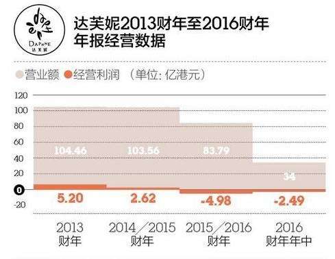 这是近十年来,达芙妮第二次交出的亏损成绩单。公告显示,2015年达芙妮净亏损金额为3.79亿港元,经营亏损金额为4.98亿港元。