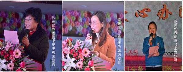 县教体局领导致辞表达了对贾洪志园长大爱情怀的赞扬,把先进的幼儿教育引进汶上,做出的贡献给予高度认可;黄金水岸旗舰园朵二班吴雨泽的妈妈代表家长发言,真实深刻的从自己孩子的一天天变化成长,表达了对育英幼儿园老师们的辛勤付出、无私关爱的真诚感谢;跟随贾园长近十年的蔚腾飞老师分享了她与园长和在育英一起成长的点点滴滴,感到了家的温暖,真切含泪地称呼贾园长是像爸爸一样的“贾叔”。代表们发言真情实感的分享令全场感动。