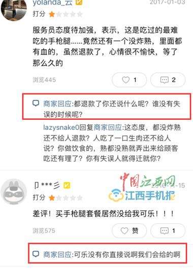 有顾客评论说口味不怎么样,商家回复:“嘴巴这么叼,我们也是无语了。”还有顾客评论道食物中有头发,感觉恶心,商家回复:“很正常啊,会和员工强调注意一下。”
