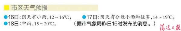 \u00A0\u00A0\u00A0 昨日天气阴冷,白天各地最高温仅10~15℃,不时下起零星小雨,有一夜入冬之感。伴随着降雨,体感湿冷,据市气象局预计,今日阴天有小雨,各地最低气温9~12℃,最高气温12~17℃。