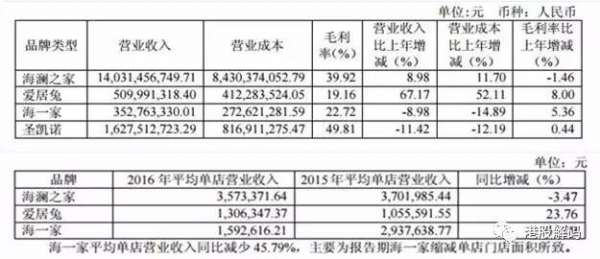 不仅营收增幅远低于旗下女装品牌,海澜之家旗下的男装品牌单店营收也均有大幅度的下滑,并不景气。数据显示,2016 年在单店营收方面,爱居兔同比2015 年增加23.76%,男装海澜之家以及海一家分别下跌3.47% 和45.79%。对于海一家平均单店营收的下滑,海澜之家表示主要是期内对海一家缩减单店门店面积所致。