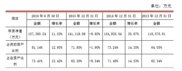 周大生方面认为存货净值金额较大且占流动资产比例较高,这主要是公司所处珠宝首饰行业特点和连锁经营模式所决定的:一是公司产品主要是镶嵌首饰、素金首饰等单价较高的珠宝首饰产品;二是公司以连锁经营模式从事珠宝首饰的销售,截至2016年6月30日,拥有自营店294家,需要大量库存商品予以铺货。
