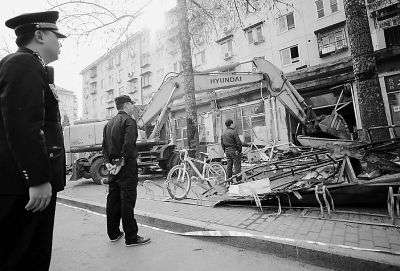 本報訊(記者 張淑玲 通訊員 劉辰)昨日上午,挖掘機高揚起鐵臂,將西城區阜成門外大街甲40號院臨街樓下的一排門臉兒房招牌挨個鏟掉,未來這些門臉兒房將會被重新整修,並用於建設社區居委會或居民文體活動場所。