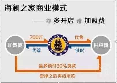 在其下游销售链上,加盟商投资用于房租、装修和人员工资,海澜之家则负责店铺形象、运营管理、货品配送,最后销售收入按比例分成。