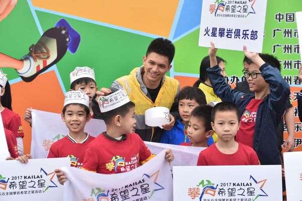 (李致新为钟齐鑫颁发证书)9点50分,中国登山协会主席李致新宣布2017年凯乐石全国攀岩希望之星活动启动,标志着全国攀岩希望之星活动正式拉开帷幕。随后,中登协领导与钟齐鑫和参加活动的小选手们留影拍照,钟齐鑫还与攀岩小选手们互动,小选手们见到心目中的攀岩巨星抑制不住心中的激动与仰慕,纷纷向钟齐鑫索要签名。