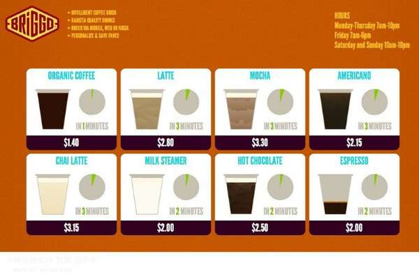 \u00A0 源于德州奥斯汀的 Briggo Coffee 将可能成为重度咖啡爱好者的新选择!Briggo 认为全世界至少已有两千五百万个咖啡爱好者,咖啡对他们是无可取代的日常必需品,那么,喝咖啡是不是能有更快速便利又能订制化的方式呢?