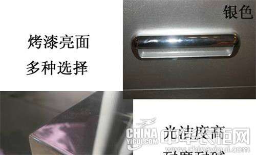 说了立柱,就得接着说说这些用于搁板、抽屉的板材。这款衣帽间的板材用了烤漆亮面板。烤漆采用亮霸环保面漆工艺,比一般油漆所含甲醛量低很多,而且硬度较高不易损伤,同时防酸耐碱,即使是白色的面板也不会很快变得黄黄的。烤漆处理后,面板表面亮度高,光可鉴人,很有时代感。