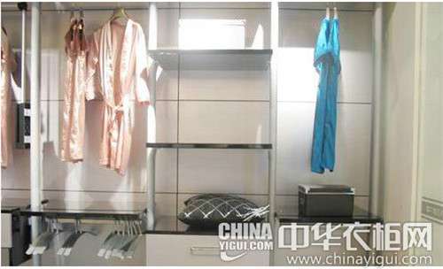 开放式衣帽间有别于传统衣柜给人的感觉,通过简单的元素组合出开阔、大气的视觉效果,富有时尚感。可调节的间隔设计给消费者更大的发挥余地,由他们自己组合出最合适自己空间的衣帽间,且有多种颜色、板材、尺寸可以选择,让衣物收纳呈现更大的可能性。可惜,开放式衣帽间有一项明显软肋,就是其防尘功能差,消费者必须常常打扫,衣物也要保护好。另外,升降衣架虽然方便,但挂衣杆上的把手显得突兀,需要用衣物遮一下。