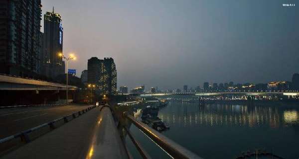镜头以由东向西的视角从嘉滨路看向大桥,江水瑟瑟,落日熔金,主体景观是飞跨南北的大桥,近处富城大厦独特的船型结构清晰可见,远处北滨路鳞次栉比的高楼勾勒出山城独特的天际线,重庆大美的沿江风景得以完美呈现。剧中的桥梁,建筑的位置特点,甚至轻轨都和这张图片相符。