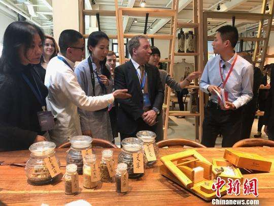 在321梵木创艺区,外国领事们对创意设计表现出浓厚兴趣。刘婷 摄