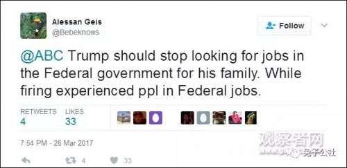 “特朗普应该停止在联邦政府为自己的家人找工作”