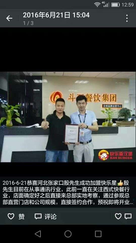 殷先生心里十分激动:“我没想到我第一次创业就获得了成功,快乐星汉堡给我的不仅是一份事业,也是一份荣耀。感谢快乐星,我会继续支持快乐星的。”