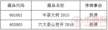 \u00A0 \u00A0 \u00A0 \u00A0本中心下列藏品于2017年3月18日、2017年3月20日、2017年3月21日已连续三个交易日价格跌停: