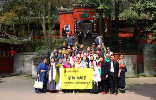 且尹纪周先生作诗代表京津冀访茶团致敬雅安名山:“大风起兮云飞扬,满眼春兮蒙顶芳。京津冀鲁苏俱来兮慕茗香。朝圣地兮化慈航。安得正清和雅兮守茶皇?智通道合兮韵绕梁”。
