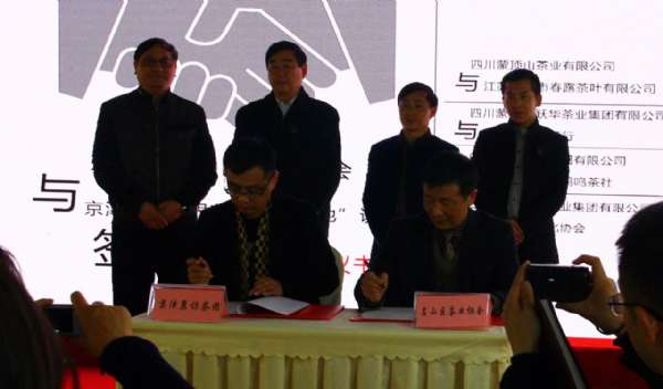 下午参加“2017蒙顶山产品推介会”。推介会由经信局龙局长亲自主持,对接雅安相关重点茶企,品鉴蒙顶山茶业绿茶、黄茶、黑茶、红茶和香茶5大体系的名茶,零距离体验蒙顶山“龙行十八式”长嘴壶茶艺、川剧变脸技艺。尹纪周老师代表中茶盟京津冀茶界与雅安市茶叶流通协会副会长、名山区工商质监局副局长梁健先生签订《蒙顶山茶战略合作协议》,拟在资源培养、产品开发、市场拓展、品牌打造等方面加强战略合作,力争“十三五”期间在京津冀鲁苏地区销售蒙顶山茶30亿元。