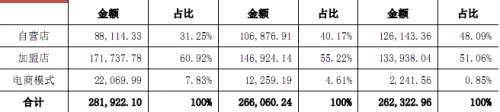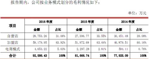 招股书显示,2014年、2015年及2016年周大生分别实现营业收入26.64亿元、27.29亿元及29.02亿元;净利润从2014年的3.24亿元增长到2016年的4.27亿元,复合增长率达14.80%。截至2016年12月31日,周大生拥有自营店294家,加盟店2,162家。