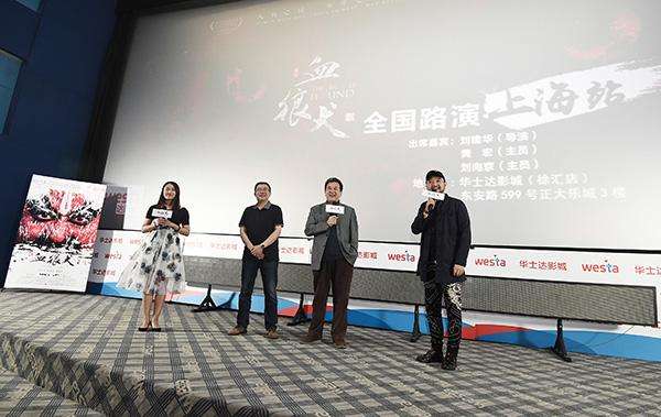 黄宏(左三)与主创参加《血狼犬》上海站路演。