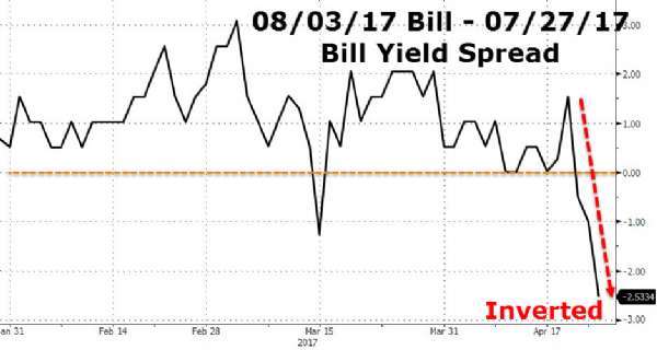 与此同时,美国短期国债(Bill)的利差却呈现倒挂现象,显示超短期的国债收益率更高,反映出市场依旧担心周五的预算支出提案能否通过,以及美国下半年的债务上限问题能否解决。