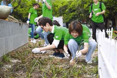 四月,正值星巴克“全球服务月”,免费赠饮咖啡之余,今年杭州站的大型环保主题活动在西湖区古东社区举行。4月20日,星巴克员工与青环志愿者服务中心、浙江科技学院的志愿者共200余人,开展环保主题的社区绿化活动,为杭城添绿。
