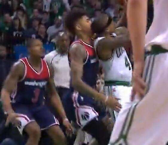 随后比赛进行到第三节7分47秒时,凯尔特人继续发起进攻,托马斯跑动,波特上前防守,托马斯跑动用头直接撞到波特鼻子上,随后镜头中可以看到波特马上就捂住自己的鼻子,但是血已经大量的流出,止都止不住。比赛紧急暂停,波特迅速回到更衣室治疗。托马斯也来到奇才队这边试图解释,引起莫里斯的强烈不满。不过经过治疗之后,波特又重新回到的比赛现场。